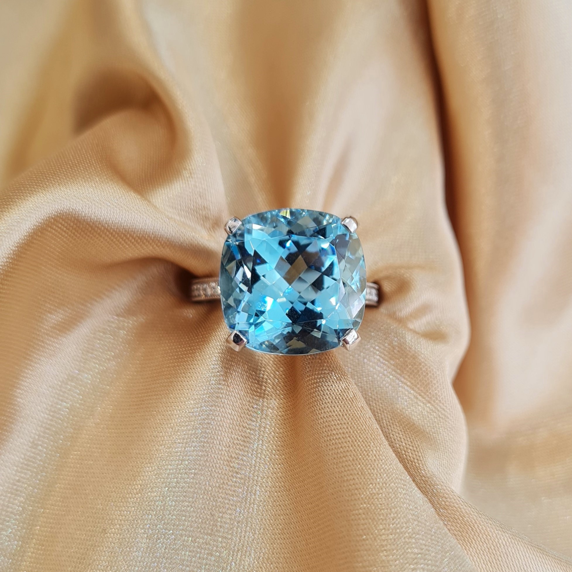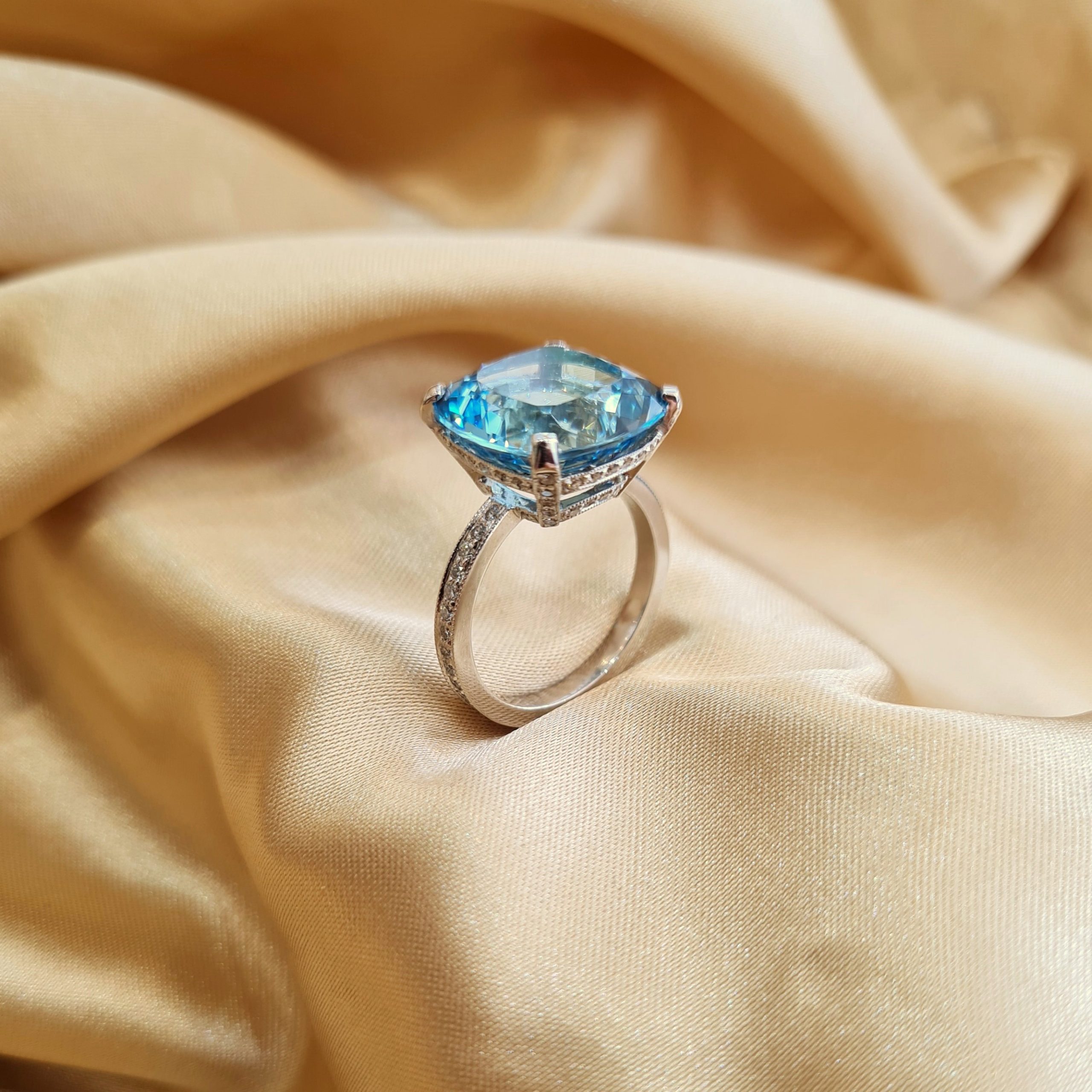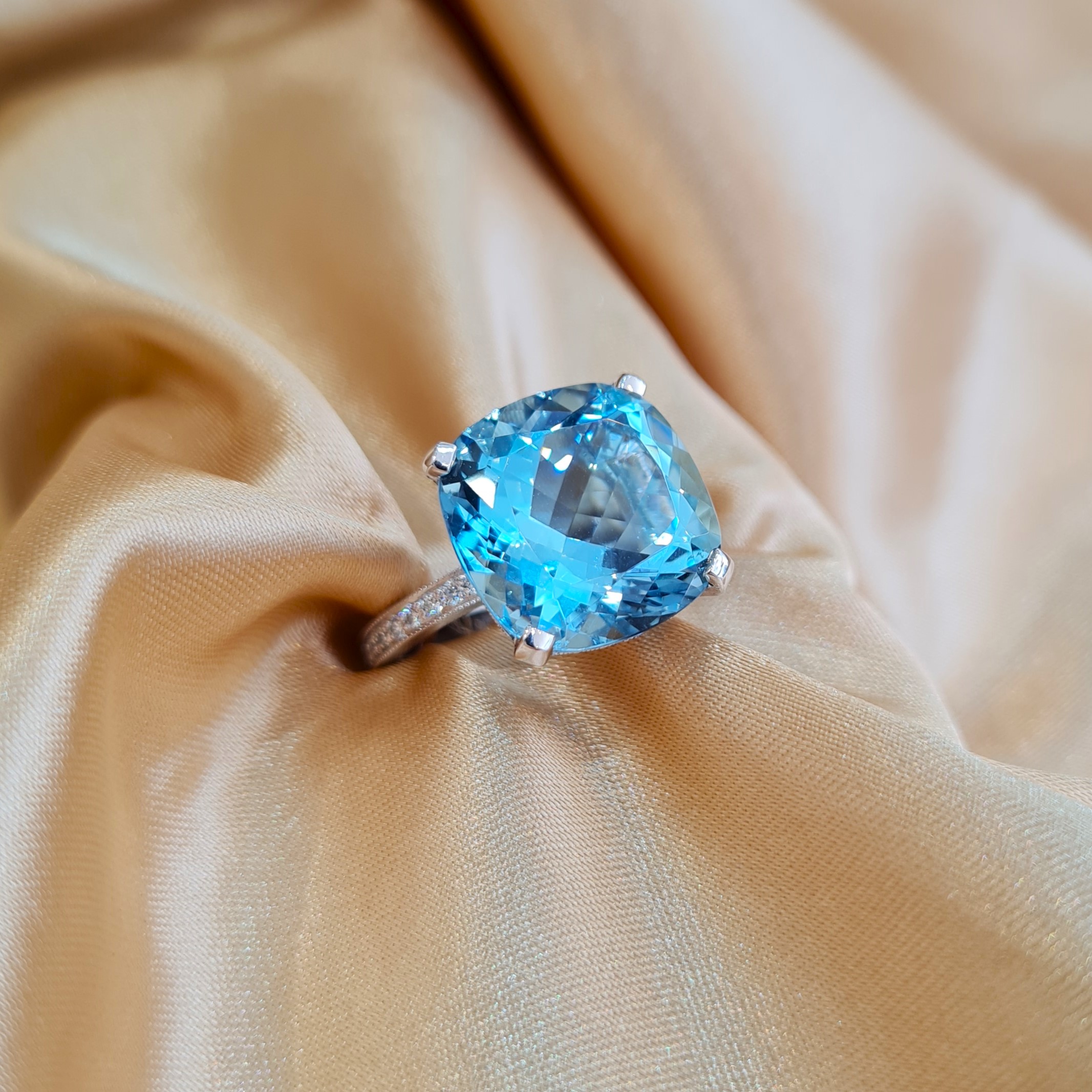 Inspired by The Roman God of the seas  - King Neptune. The bright clear blue of this spectacular aquamarine gives the impression of a endless ocean.