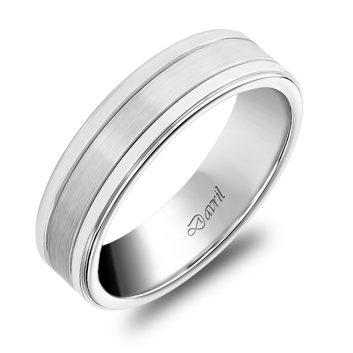 One of our most popular wedding rings, this band has a flat top profile with brushed centre and contrasting polished drop edges. Hand rolled from a single piece of metal for the most luxurious and durable finish.
